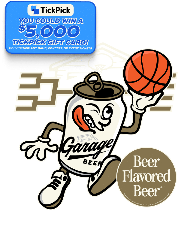 Garage Beer TickPick Hoops Giveaway. No purchase necessary. No alcohol will be awarded as part of the prize package. Sweepstakes open to U.S. residents 21+ only, must be 21+ to enter. Sweepstakes begin on 3/1/2026 at 12:00am EST and end at 11:59pm EST 4/15/2026. See Ocial Rules at https://drinkgaragebeer.com/TickPickHoopsGiveaway for free entry, prizes, and details. Message and data rates apply. Participant agrees to receive response texts or emails. Void where prohibited. Enjoy responsibly. ©2026 Jock Beer, LLC, 330 W Spring St., Suite 303, Columbus, OH 43215.